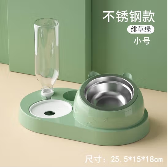 花螗季猫咪饮水器狗狗双碗自动宠物碗喂食器狗碗猫盆猫猫用品 小号四合一带钢碗【暗绿色】一个装 中性 ¥52.90