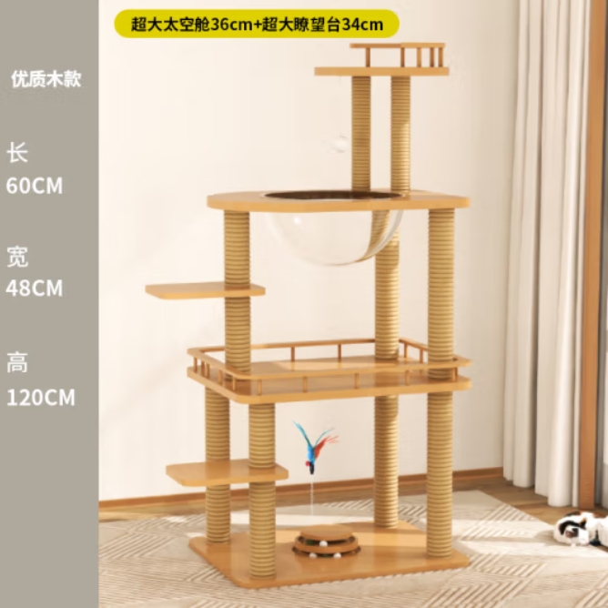 瓜洲牧猫爬架实木超大猫咪猫树猫窝太空舱剑麻猫抓柱猫抓板大型猫架一体 猫玩具爬架MX6 升级版超大太