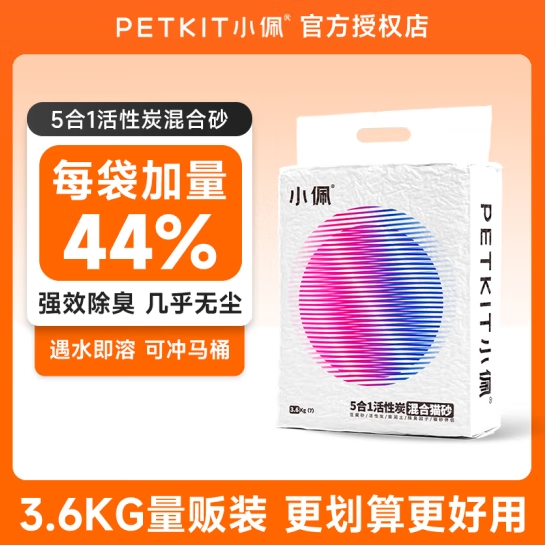 小佩猫砂膨润土猫砂五合一混合豆腐猫砂活性炭除臭无尘可冲马桶猫沙 【经典款大容量装】1袋3.6kg