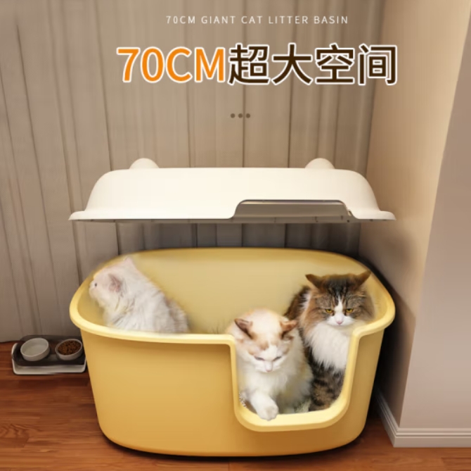 WCZ猫砂盆特大号70cm以上全封闭猫厕所防外溅猫咪特大猫沙盆子巨大 黄【71cm巨无霸】