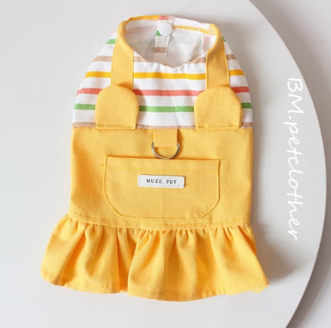 惠芸阙狗狗衣服春夏装连衣裙泰迪小型犬猫咪宠物服装条纹熊牵引裙子 XD小熊条纹裙-亮黄 S约2-3斤 ¥31.00