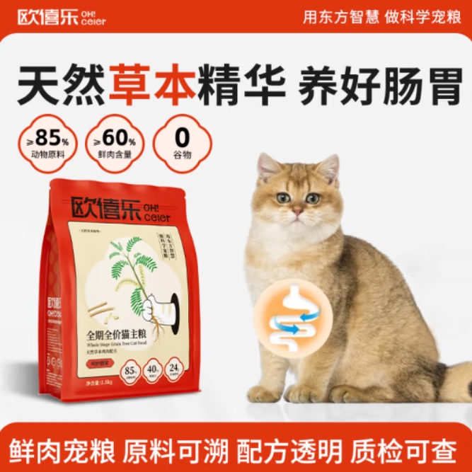 欧僖乐天然草本 呵护肠胃 护肤美毛鲜肉猫粮全阶段全期幼猫成猫 猫粮 呵护肠胃-天然草本