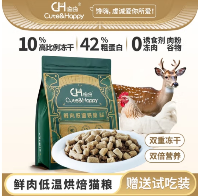 馋嗨冻干猫粮鹿肉生骨肉低温烘焙粮鲜肉无谷全价猫粮幼猫成猫专用主粮 生骨肉+鹿肉 2kg