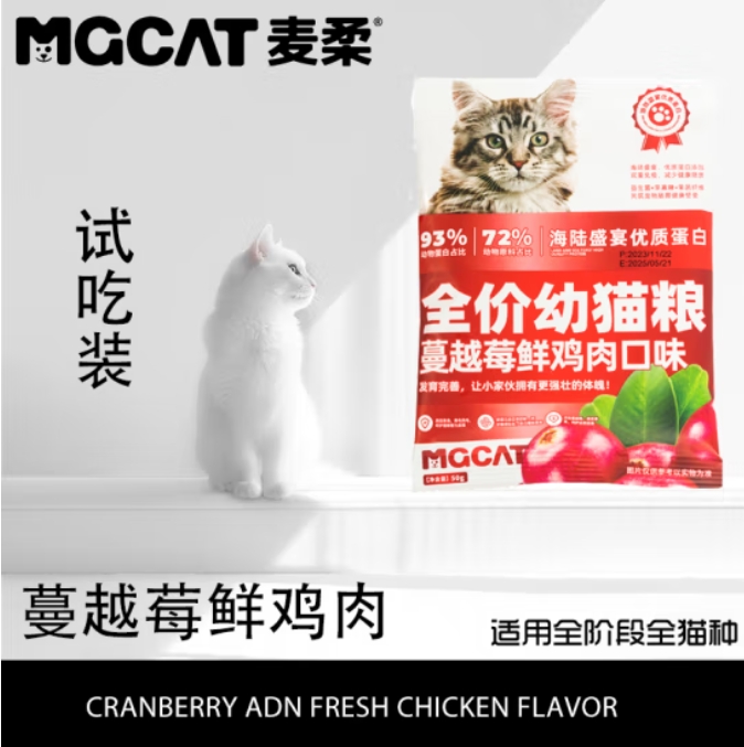 MGCAT麦柔猫粮全阶段通用天然粮 蔓越莓鲜鸡肉试吃装50g
