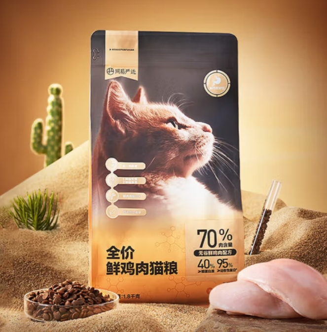 网易严选 全价鲜鸡肉猫粮 单一肉源低敏通用猫主粮鲜肉猫粮 【低敏无谷护肠胃】1.8kg*1袋