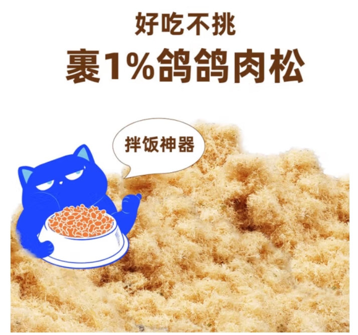 喔喔(WOWO)猫粮 成猫幼猫通用全价国产无谷鸽子肉松猫干粮 【双拼】鸽子+兔肉松50g各1袋 ¥10.10