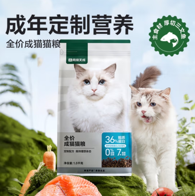 网易严选 全价成猫粮居家宠物主粮成猫猫咪食品 1.8kg/袋 ¥88.00