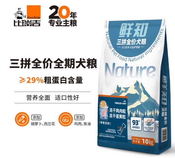 比瑞吉俱乐部鲜知系列中大型小型犬冻干三拼成犬粮10kg幼犬狗粮 ¥188.90