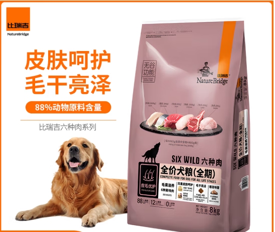 比瑞吉六种肉系列高蛋白无谷全价全期成犬幼犬粮8kg金毛泰迪狗粮 ¥449.00