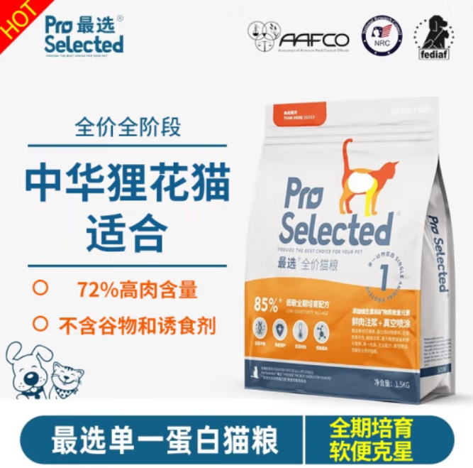 最选猫粮无谷低敏猫主粮干粮全期成猫幼猫咪营养单一肉源蛋白全价SD36 中华狸花猫猫粮 1.5kg/袋 ¥79.00