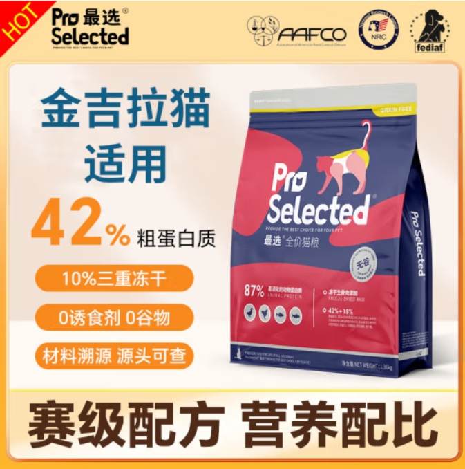 最选赛级猫粮猫主粮猫咪冻干全价成猫幼增肥GA42适用于各类宠物猫家猫 金吉拉猫猫粮 1.36kg/袋 ¥79.00