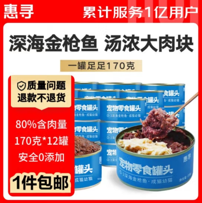 惠寻猫罐头猫湿粮宠物零食浓汤红肉猫咪罐头金枪鱼口味大罐装170 克 金枪鱼红肉170g*12罐 箱 ¥44.90
