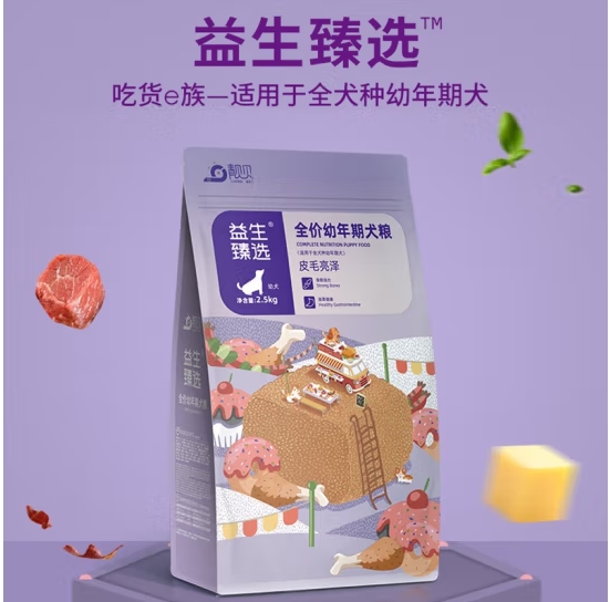 靓贝狗粮皮毛亮泽全价幼犬粮吃货e族益生臻选狗粮 2.5KG5斤