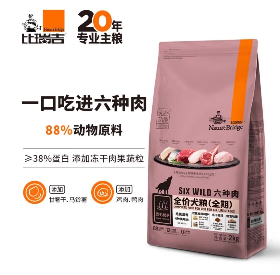 比瑞吉六种肉系列高蛋白无谷全价全期成犬幼犬粮2kg金毛泰迪狗粮 ¥159.00