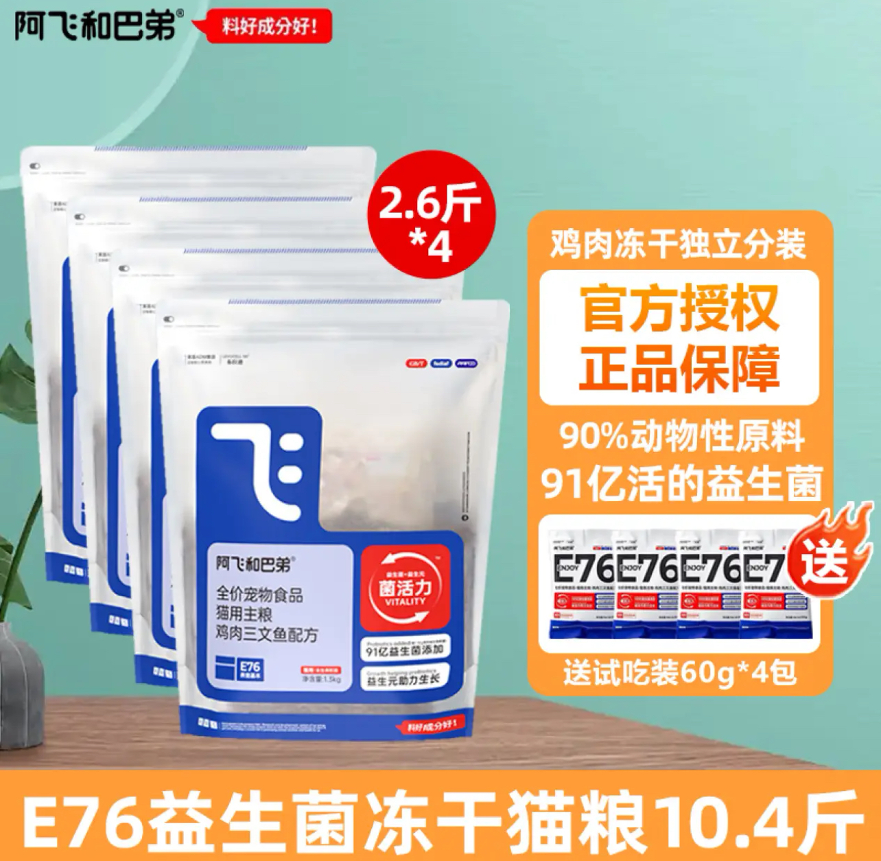 阿飞和巴弟猫粮e76小蓝包全价冻干双拼猫粮成猫幼猫猫粮试吃添加益生菌猫粮 e76鸡肉三文鱼猫粮