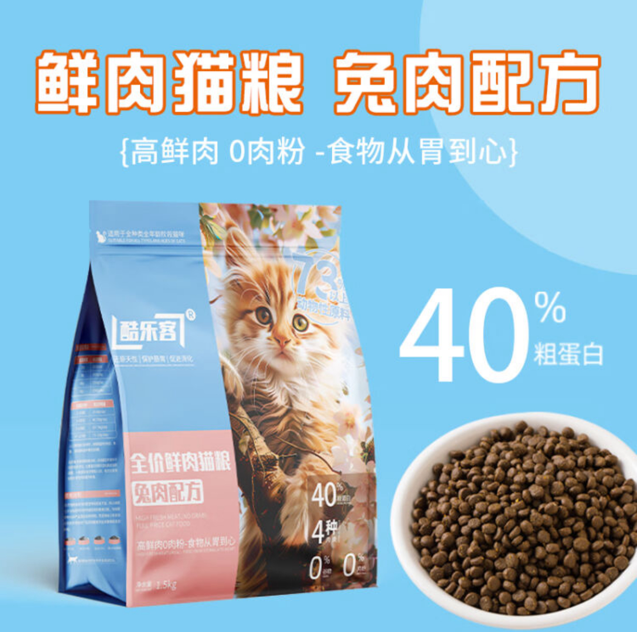 酷乐客40%蛋白鲜肉猫粮无谷低敏成猫幼猫通用型尝鲜装猫主粮 纯猫粮 3斤惊喜价