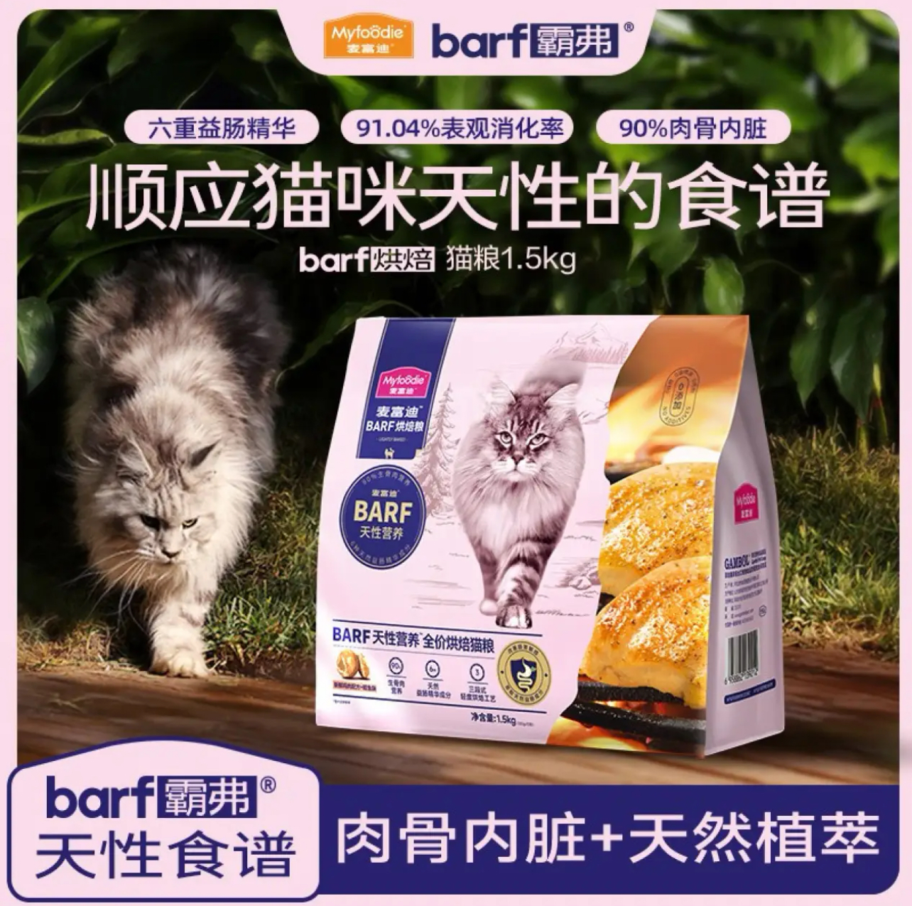 麦富迪barf霸弗全价低温烘焙猫粮生骨肉成幼猫通用1.5kg(鸡肉+鳕鱼酥)
