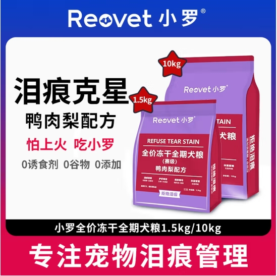 小罗全价冻干全期赛级犬粮泪痕管理美肤爆毛护肝明目比熊狗粮T03 T03全价冻干全期犬粮1.5kg