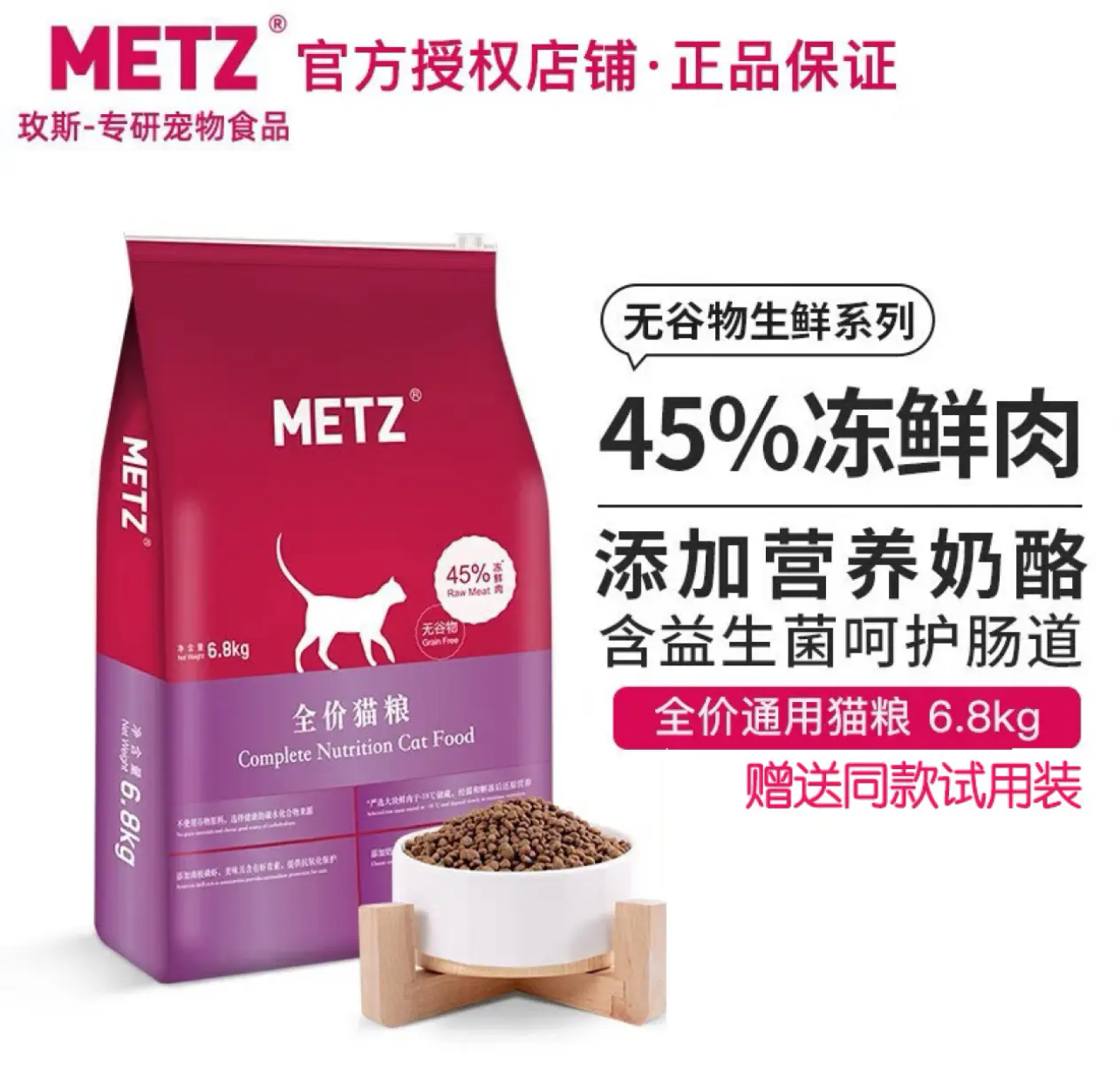 玫斯(metz)猫粮无谷物鲜肉成幼全期猫粮 6.8kg