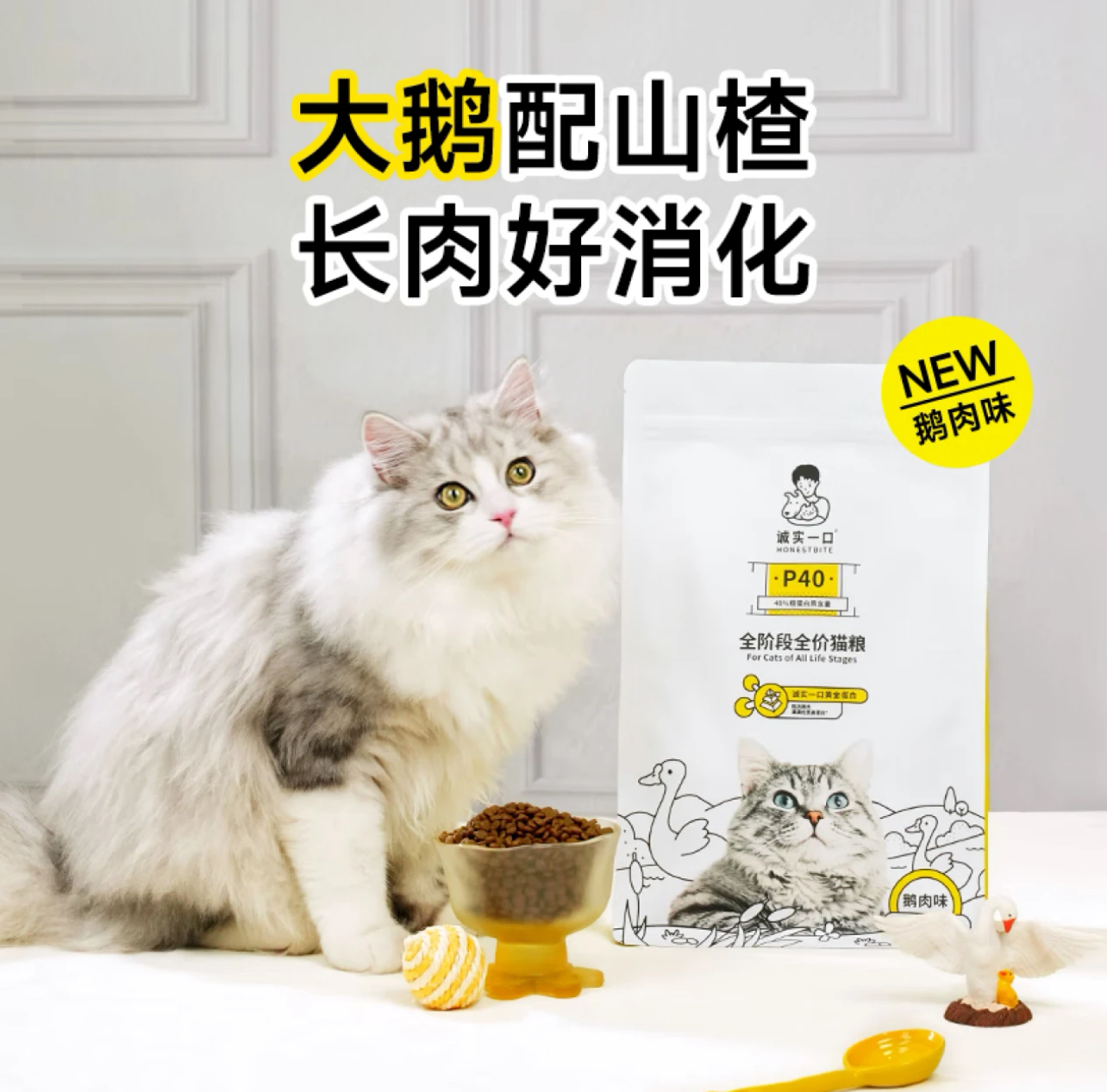 诚实一口P40高蛋白成猫幼猫全期全价增肥发腮猫粮1.5kg