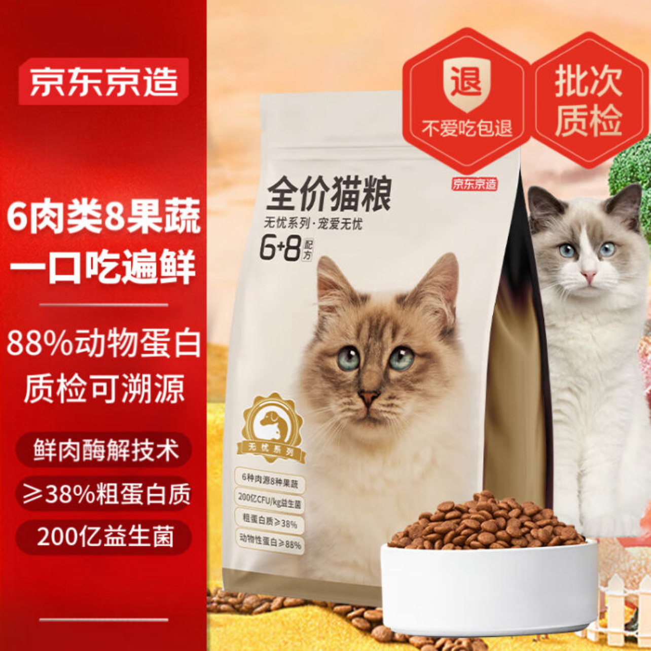京东京造 鲜肉无谷益生菌6种肉全价猫粮10kg主粮成猫幼猫猫干粮