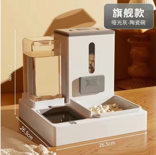 山头林村猫碗陶瓷狗碗猫猫自动喂食器猫盆饭碗狗狗喝水碗水粮一体保护颈椎 雾朦灰-陶瓷碗[旗舰款]
