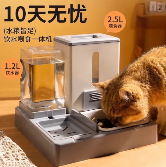 山头林村猫碗陶瓷狗碗猫猫自动喂食器猫盆饭碗狗狗喝水碗水粮一体保护颈椎 豪华款配套碗[不锈钢一个