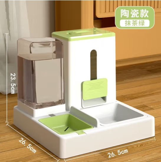 山头林村猫碗陶瓷狗碗猫猫自动喂食器猫盆饭碗狗狗喝水碗水粮一体保护颈椎 抹茶绿-赠干燥包[经典款