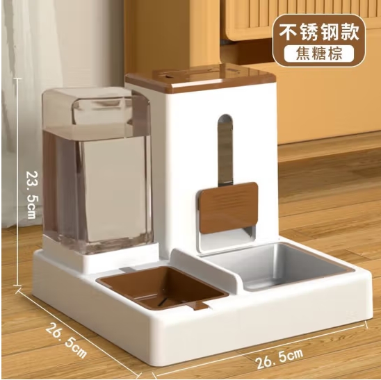 山头林村猫碗陶瓷狗碗猫猫自动喂食器猫盆饭碗狗狗喝水碗水粮一体保护颈椎 焦糖棕-不锈钢碗[豪华款